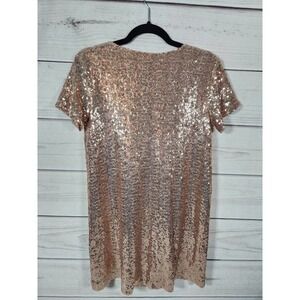 Lulus Womens Shift Dress Light Up The Night Champagne Short Sleeve Sequin Size S