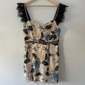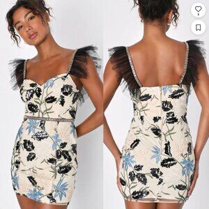 Show Stopper Cream Embroidered Sequin Bodycon Mini Dress.