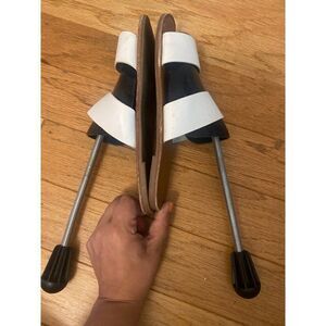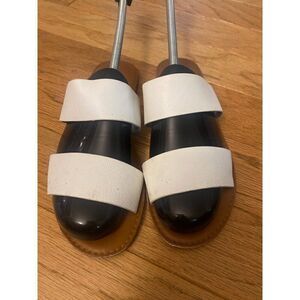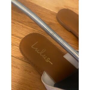 Lulus Womens Size 7 White Leather Sandals Two Strap Flat Casual open toed shoes