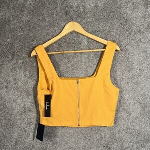 Lulus Womens Size Medium Crop Top Orange Sleeveless Zip Back Lined Tank Chic