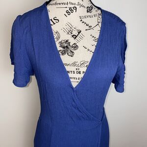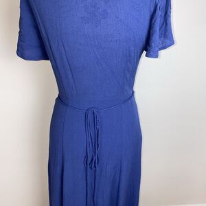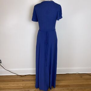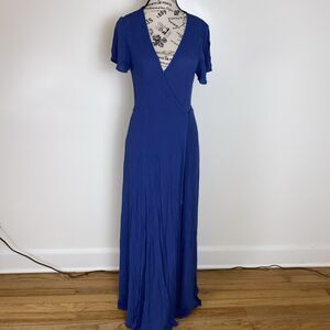 Lulus Women's Size Small Much Obliged Wrap Maxi Dress Slate Blue Gauzy Crinkle
