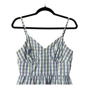Lulus Women's Size Small Picnic Party Light Blue Gingham Tiered Skater Dress 50% Cotton; 50% Polyester