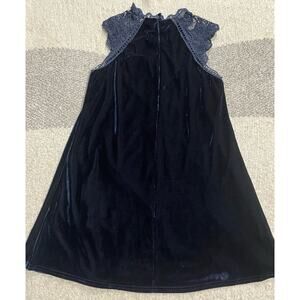 Lulus Women's Small Crocheted Lace Velvet Trapeze Swing shift Dress Navy Blue
