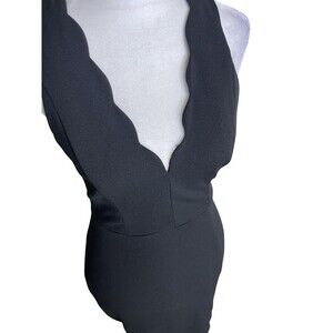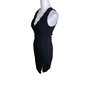 Lulus Women's Small Feeling Coy Scalloped Neck Mini Dress Black High Slit Party