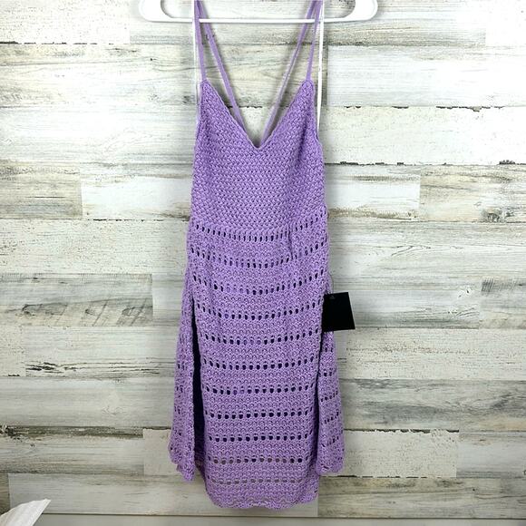 Lulu’s Women’s Small Purple Crochet Lined Spaghetti Strap Mini Dress NWT boho