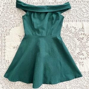 Lulus Women’s Small Season of Fun Forest Green Off Shoulder Skater Mini Dress