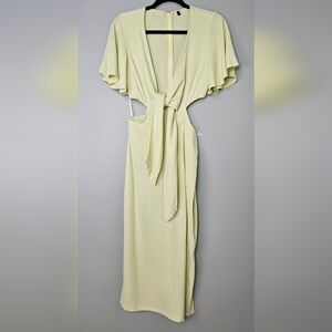 NWOT Lulus Summer Journey Light Green Tie-Front Cutout Midi Dress, Size MED (size tag missing, please see measurements below)