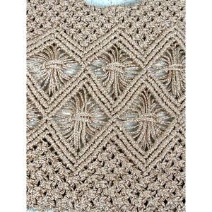 Lulus Women’s Sunny Glitter Gold Woven Crochet Linen Shoulder Tote Bag Zip NEW