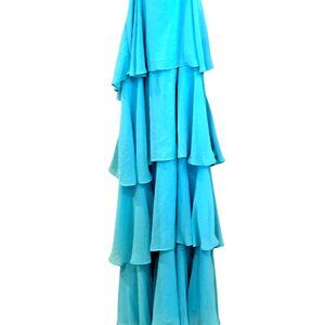 This stunning turquoise tiered dress is perfect for any occasion. The tie-back design offers a flattering fit, while the lightweight fabric ensures comfort all day long. Ideal for casual outings or dressier events. New with tags.