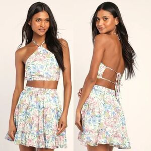 Lulus women Ivory Floral Print Tiered Mini Skirt!