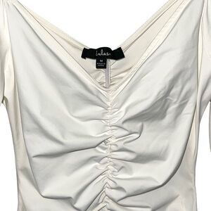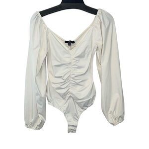 Lulus Womens V-Neck Ruched Stretch Long Sleeve Bodysuit White Medium