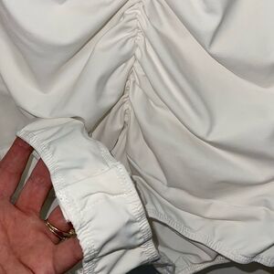 - Ruched front and back