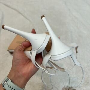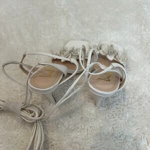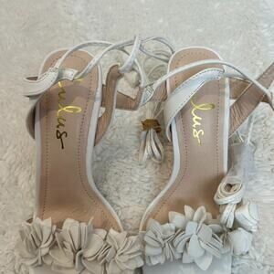 These Lulu's Women's White Strappy Floral Heels in size 6 are perfect for a wedding, party, or cocktail event. With an open toe and lace-up closure, these high heels feature a 3-inch platform and ankle strap accents. Made of faux leather with a rubber outsole, these floral heels are designed for summer and spring occasions. The stiletto heel and strappy design add a touch of elegance and style to any outfit, making them a chic choice for any fashion-forward woman.