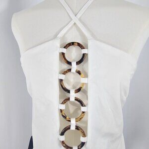 Lulus Women's White Tortoise Shell O Ring Cut Out Halter Top Size M NWTF