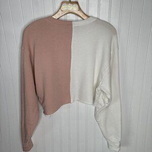 Lulu’s Womens Womens Small Color block Pink Cream L/S Raw Hem Crop Fleece Shirt