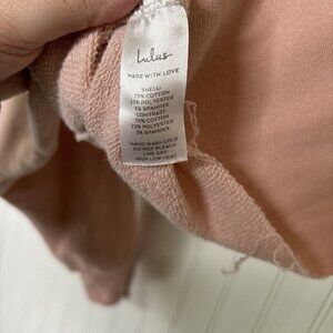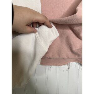 Lulu’s Womens Womens Small Color block Pink Cream L/S Raw Fray Hem Oversized Crop Fleece Shirt Sweatshirt