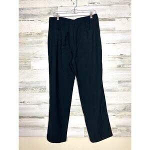 Lulus Womens XL Black Pleated Straight Leg Elastic Back Dress Pants Trousers NEW
