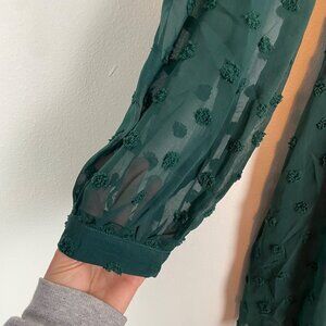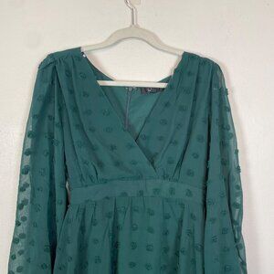 Lulu's Women's XL Emerald Green Always on Repeat Clip Dot Mini Dress Long Sleeve