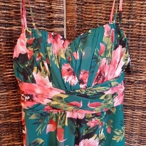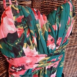 Lulus Women's XL Floral Chiffon Pleated Romantic Sweetheart Neck Midi Dress Tea