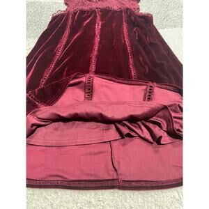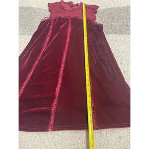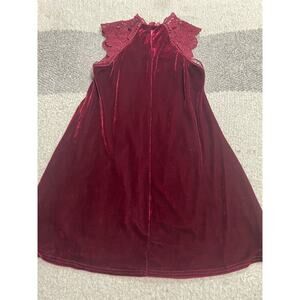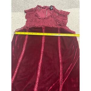 Lulus Women's XS Crocheted Lace Velvet Trapeze Swing shift Dress Burgundy
