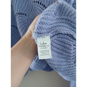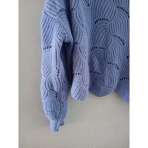 Lulus Womens XS Lilac Knit Sweater Open Weave Scallop Pattern Pullover Cozy