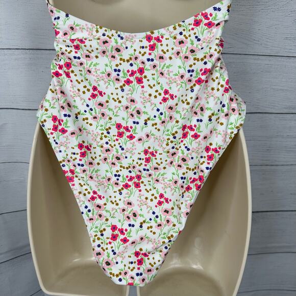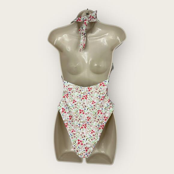 Lulus Womens size Medium Vacation Calling White Floral O-Ring One Piece Swimsuit