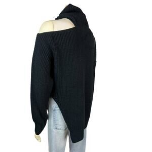 Lulu’s Womens sweater M Medium Black Knit Cold Shoulder Turtleneck Slouchy