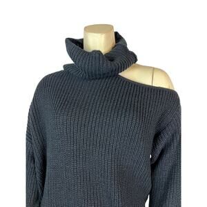 Lulu’s Womens sweater M Medium Black Knit Cold Shoulder Turtleneck Slouchy