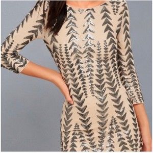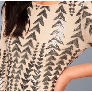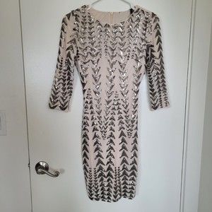 Lulus Womens sz Small Sequin Bodycon Dress - Shine on Me Nude NWOT