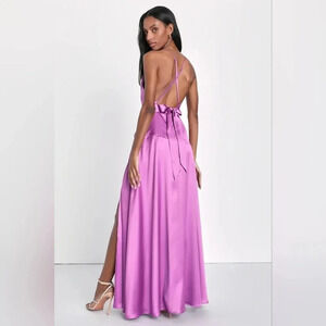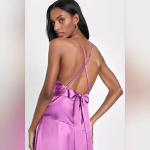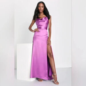 Lulus Wonderful Allure Purple Satin Backless Cowl Neck Maxi Dress Wedding Party. New without tags. See all pictures for details.