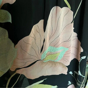 Lulus Wondrous Water Lilies Maxi Dress black floral print High Slit Size Large