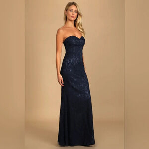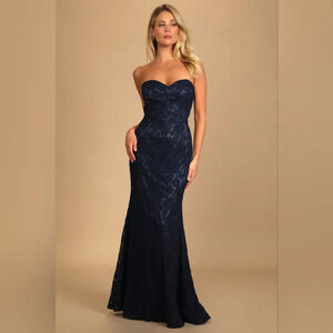 Lulus Wow the Crowd Navy Blue Lace Strapless Mermaid Maxi Dress S Wedding Party NWOT. See all pictures for details. Currently SOLD OUT online.