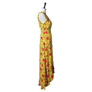 Lulus Wrap Dress Hi Low Maxi V-neck Yellow Multi Floral Women’s Size Medium M