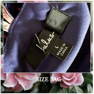 Lulus has cut the brand/size tag to prevent returns. The brand/size tag is still attached. See photos.