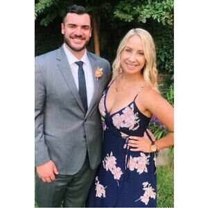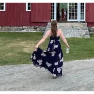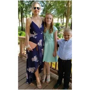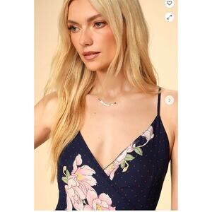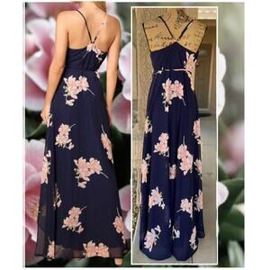 Lulu's Wrap Navy Blue Floral Print Polka Dot Loiselle Maxi Dress Size L