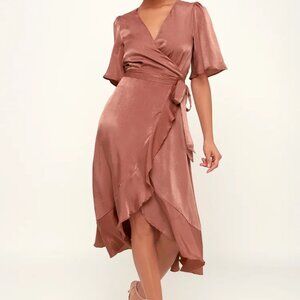 Lulu's Wrapped Up In Love Satin Faux Wrap Midi Dress large
