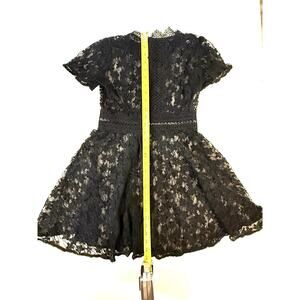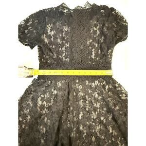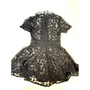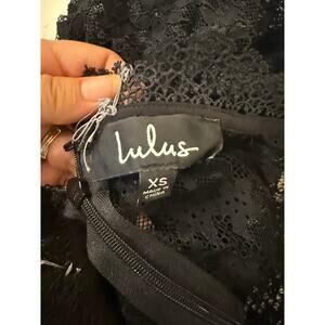 Add elegant charm to your wardrobe with this Lulus women's black lace blouse in size XS. Featuring delicate flutter sleeves, a semi-sheer floral lace overlay, and a flattering waist with crochet trim, this top is perfect for date nights or dressy occasions. Back zip closure for a secure fit. In excellent pre-owned condition.