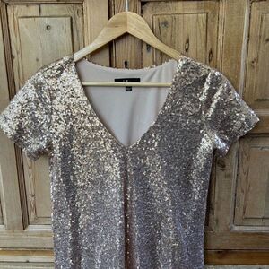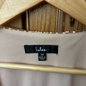 Lulus XS Sequin Dress Blush Pink Gold Short Sleeve Shimmer V-Neck Mini
