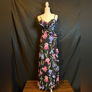 Lulus XSmall Black Floral Print Ruffled Sleeveless Maxi Dress