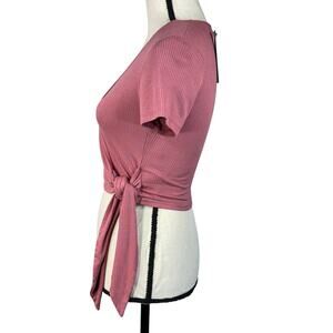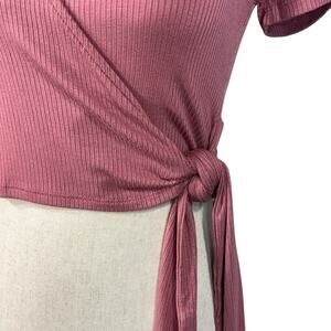 Lulus X-Small Crop Top Tie Surplice V-Neck Ribbed Stretch Short Sleeves Mauve