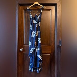 Lulus XXS All Mine Navy Blue Floral Print High-Low Wrap Dress