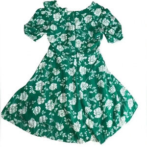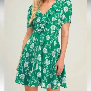 Lulu’s Ximena Green Floral Print Ruffled Short Sleeve Mini Dress