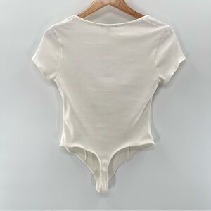 Lulu’s Y2K Ribbed Square Heart Neckline Preppy Cap Sleeve Bodysuit Size XL