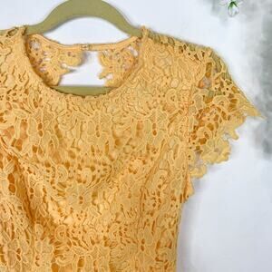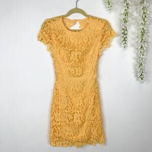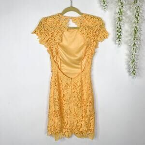 Elegant backless lace dress. Features intricate lace design. Perfect for special occasions.