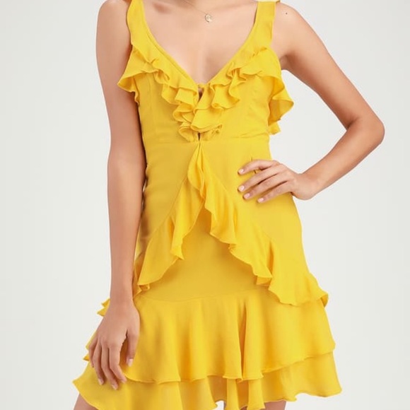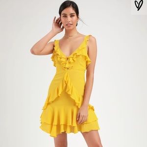 Lulu's Yellow Ruffle Mini Dress