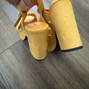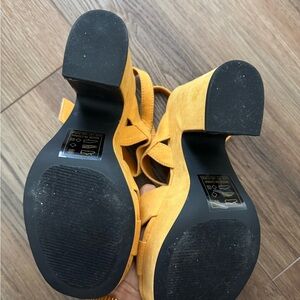 Stylish yellow sandals with a buckle strap. Perfect for summer outings.