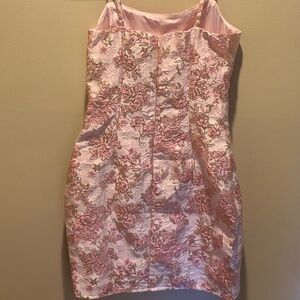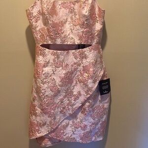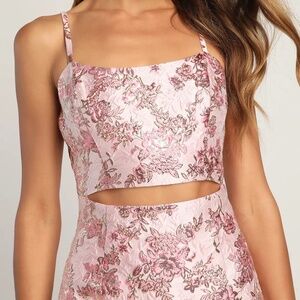 Lulus Your Attention Pink Metallic Floral Jacquard Cutout Mini Dress - Size XS
