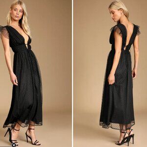 Lulus Yours Evermore Black Swiss Dot Ruffled Midi Dress