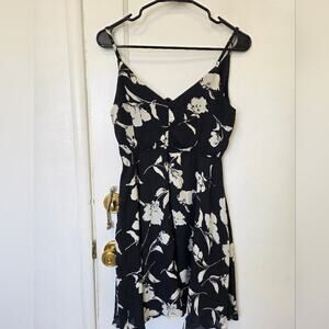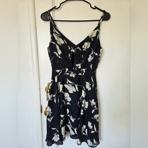 Lulu's Zoya Black Floral Print Tie-Front Skater Dress Small