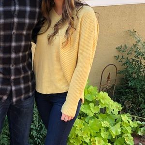 Lulus Only For You Light Mustard Yellow Knit Ling Sleeve Top - Basics. Waffle material. Worn once